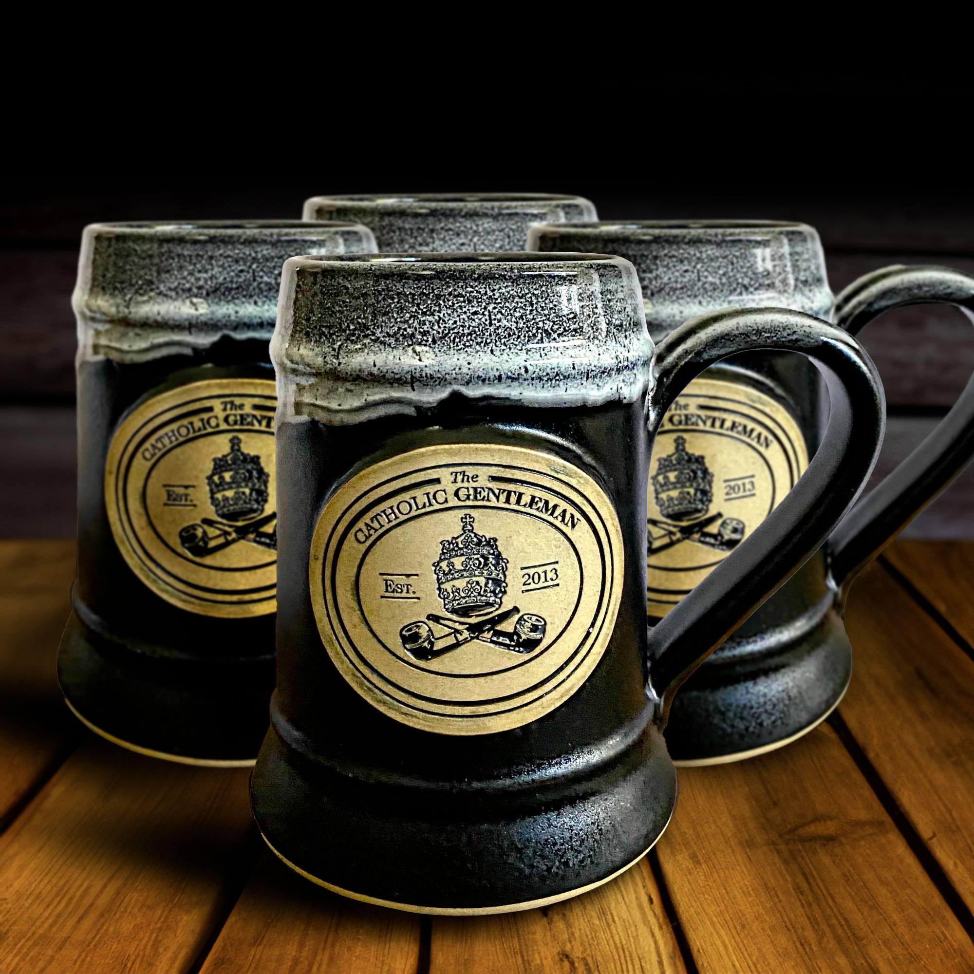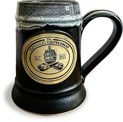 Don't miss the chance to enhance your drinking rituals with the Catholic Gentleman's stoneware coffee mug and beer stein collections.