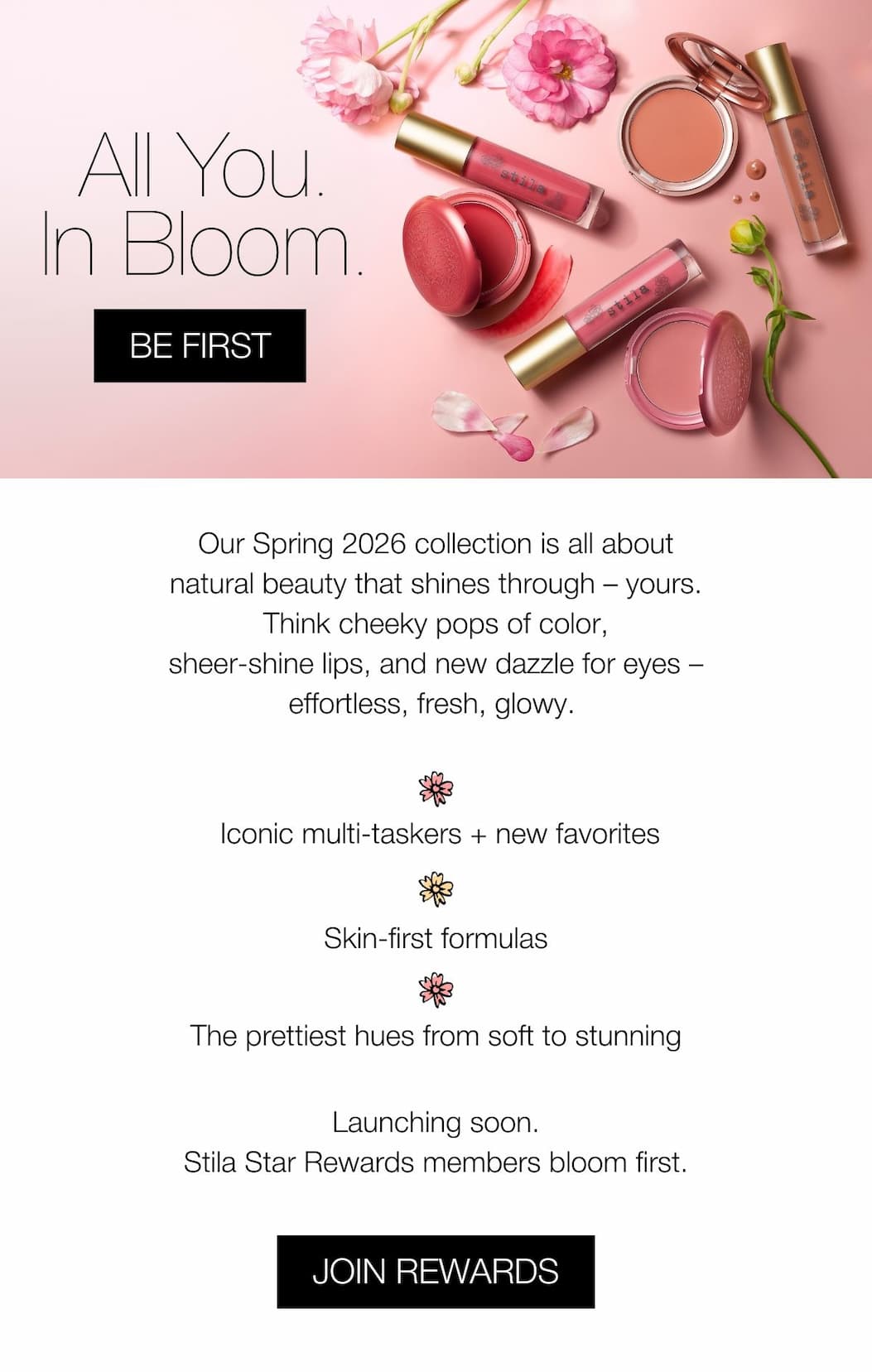 We respect your privacy. To unsubscribe, please click here Unsubscribe.Stila Cosmetics 801 N Brand Ave 910 Glendale, California 91203 | | Stila reserves the right to extend or end promotional offers at any time. Discount promotions are not applicable toward the purchase of gift cards. Discount promotions cannot be combined with any other offer unless explicitly noted and will exclude sale items, bundles, gift sets (e.g. Holiday Gift Sets), gift cards, subscription products, and the free return and package protection program. Gift with purchase promotions are only available while supplies last. Free Travel-Sized Gift is valid on an eligible order (not including gift cards), and you will have the option to select your free gift inside the shopping cart on the website. Free gifts are non-returnable and cannot be exchanged. NOTE: Sale items featured in our Stila Steals collection are FINAL SALE. No returns or exchanges are valid on these items. Gift with purchase promotions are only available while supplies last. Free Shipping for standard ground shipping is automatically applied during checkout on orders with a subtotal amount of $40+ (before tax and after discounts). On eligible orders (not including gift cards) you will have the option to include a Free Sample with your order (one per order). If you return an item from an order that included a free item (e.g. "Buy Two, Get One Free"), a free sample or as a free gift with purchase, you must include the free item(s) in your return, or a refund will not be issued. Limit one (1) promotional code per order. All purchases are subject to bank authorization prior to processing. Only authorized purchases will be processed and shipped. We reserve the right to cancel any order due to unauthorized, altered, or ineligible use of offer and to modify or discontinue any offer or promotion at any time without notice. All offers are non-transferable nor redeemable for cash or credit toward any purchase. Subject to applicable Terms of Service at stilacosmetics.com. Void where prohibited by law. | | | | |