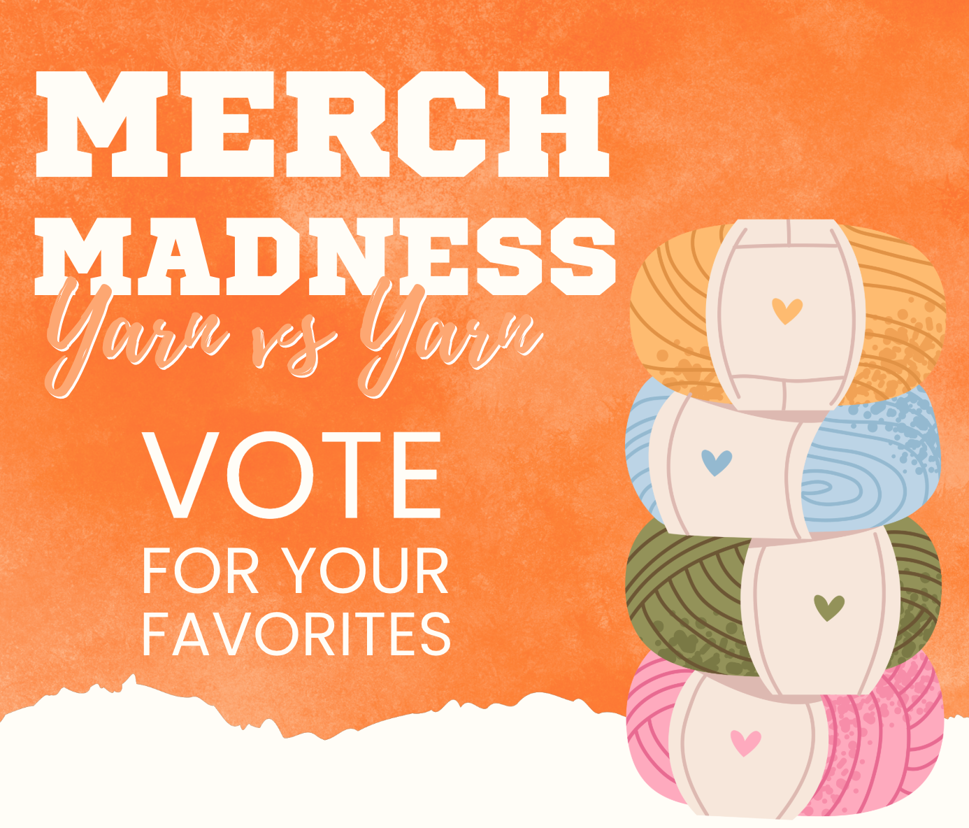 It's yarn vs yarn—and your vote decides who moves on. Vote for your favorite by clicking the yarn image below. Come back tomorrow to see who made it through π Winner announced Monday 3/30 While you wait shop 30% off all yarn & kits with the code MMAD30 | | | | |